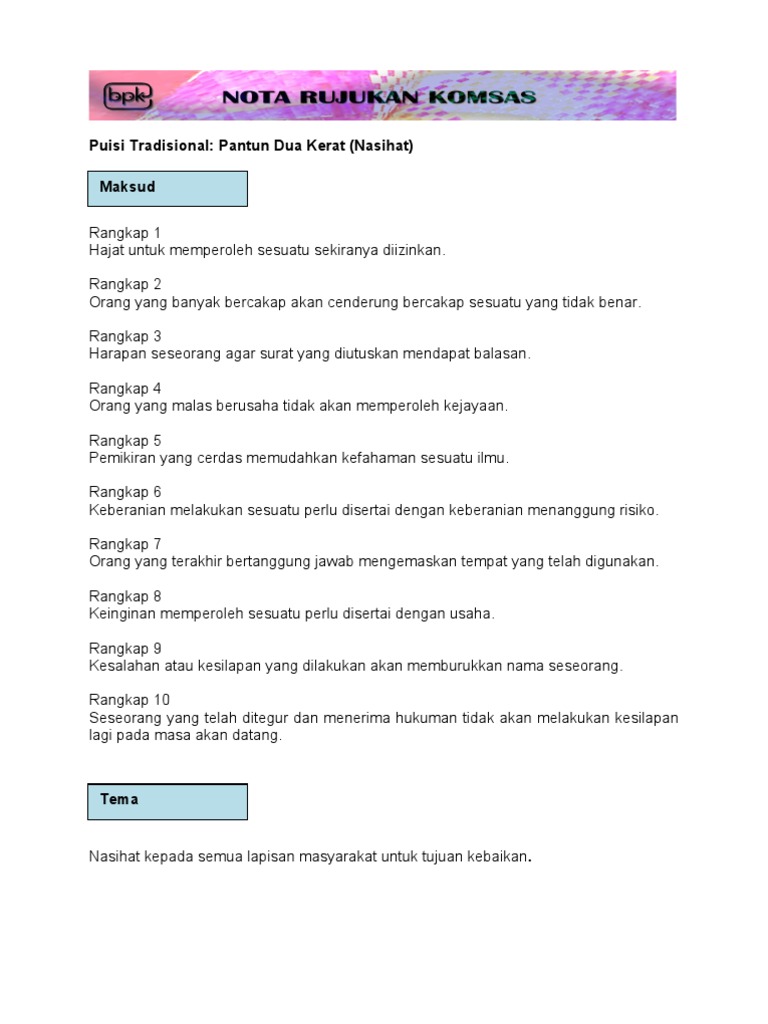 Doc Pantun 2 Kerat Nasihat Nurull Sya Academia Edu