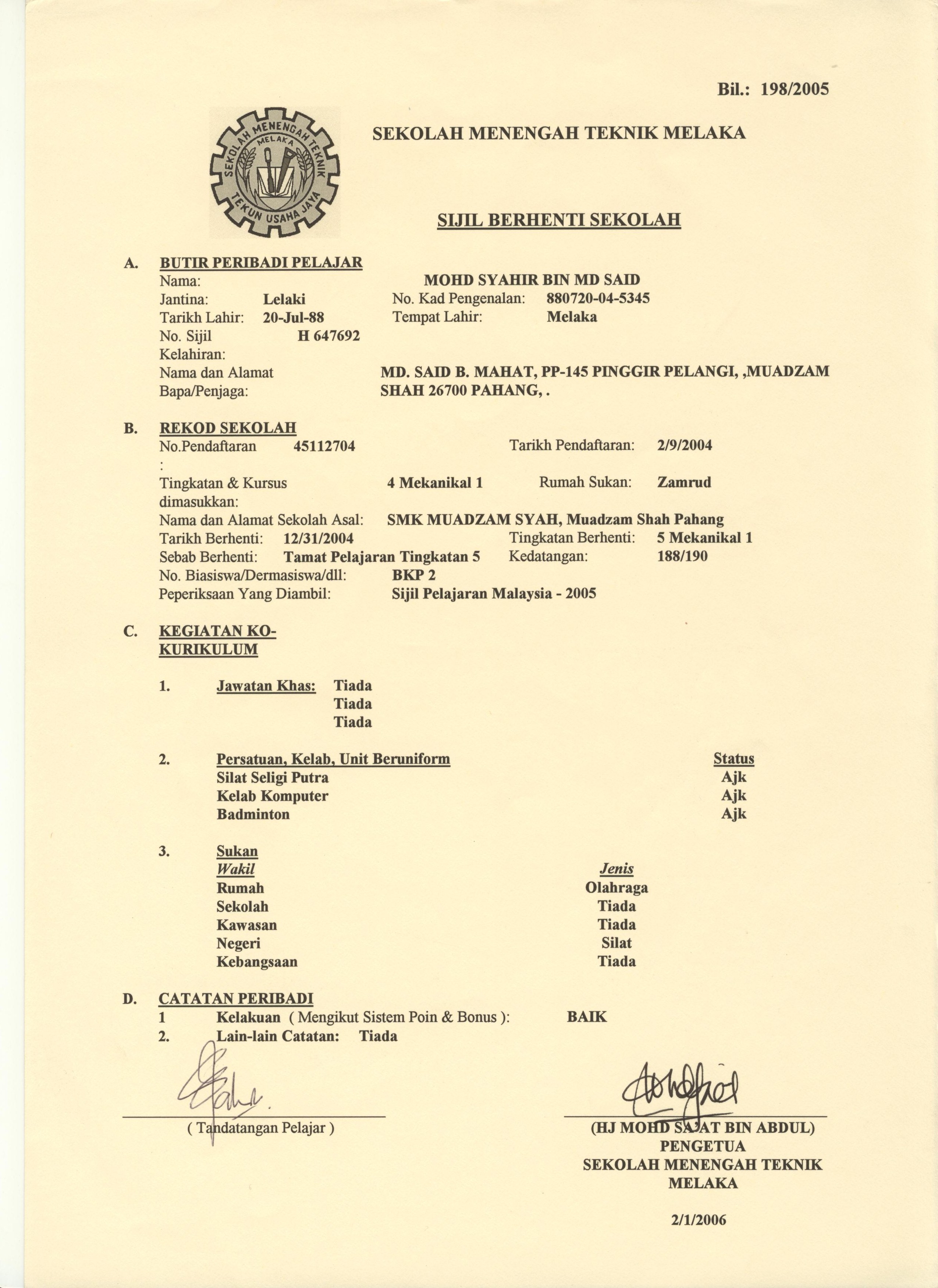 Copy Of Template Sijil Berhenti Sekolah Zul Zames Academia Edu