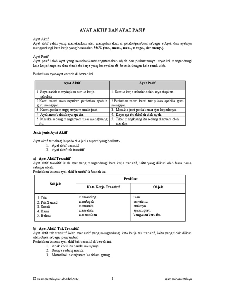 Ayat Aktif Dan Ayat Pasif