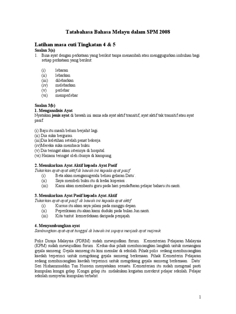 Tatabahasa Bahasa Melayu Dalam Spm 2008 Latihan Masa Cuti Tingkatan 4 5