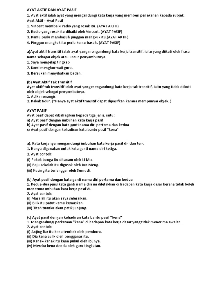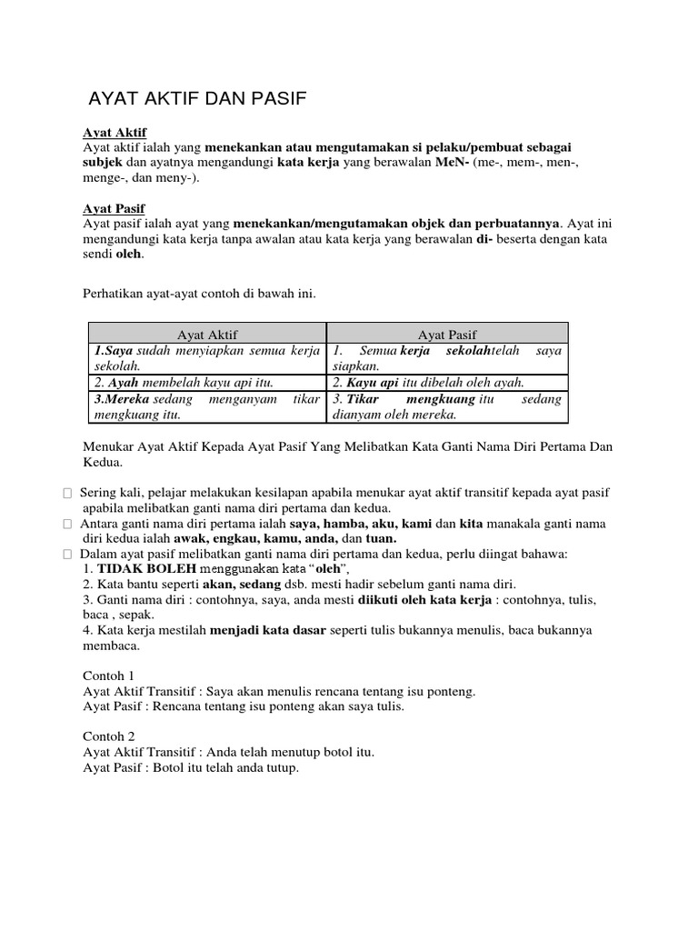 Bahasa Malaysia Tahun 5 Ayat Aktif Dan Ayat Pasif